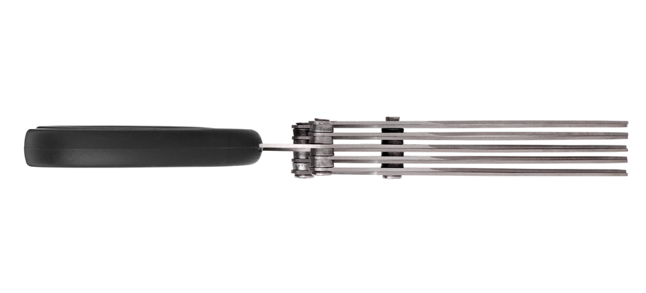 Instantly dice live herbs and vegetables straight onto your dishes without a chopping board. Stainless steel blades and dishwasher-safe.