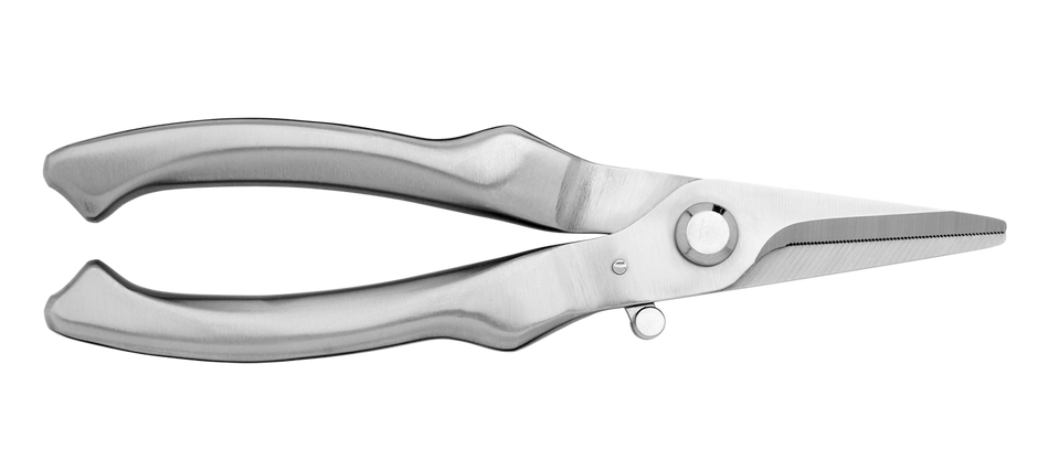 100% stainless steel with invisible spring mechanism. Nano-serrated blades ideal for herbs and vegetables of all kinds.