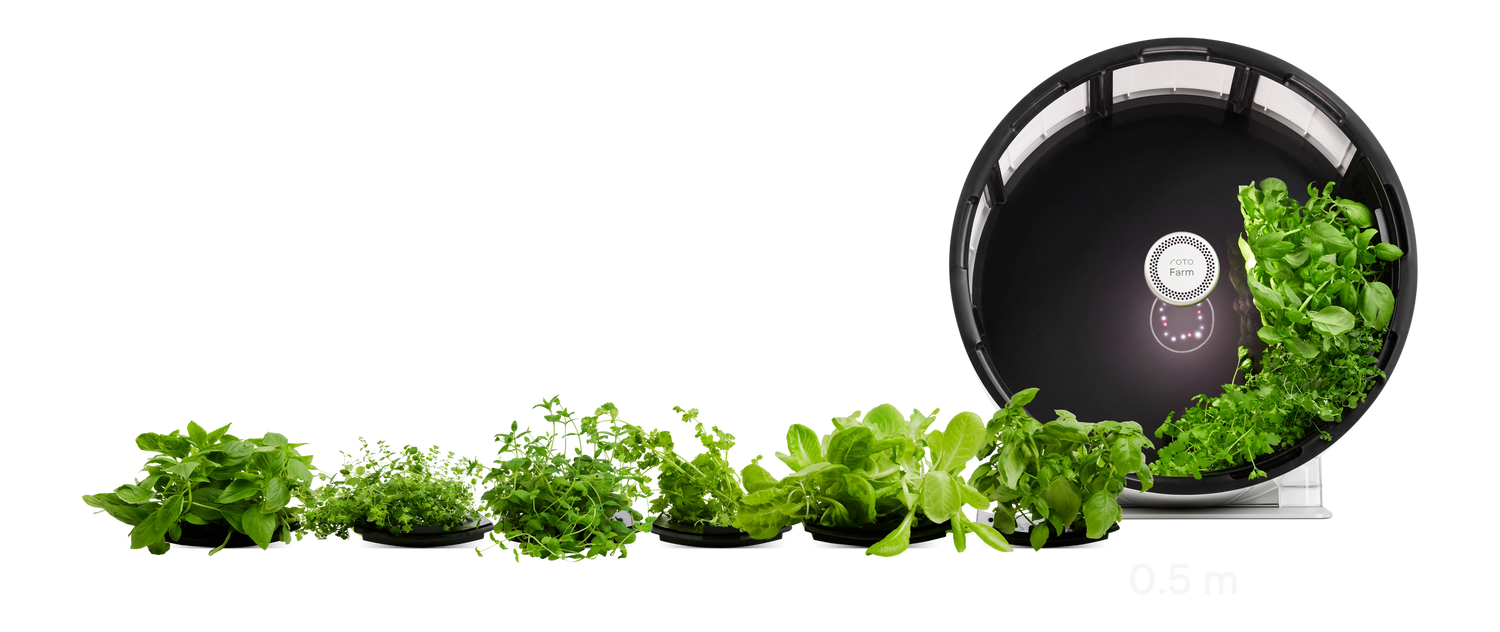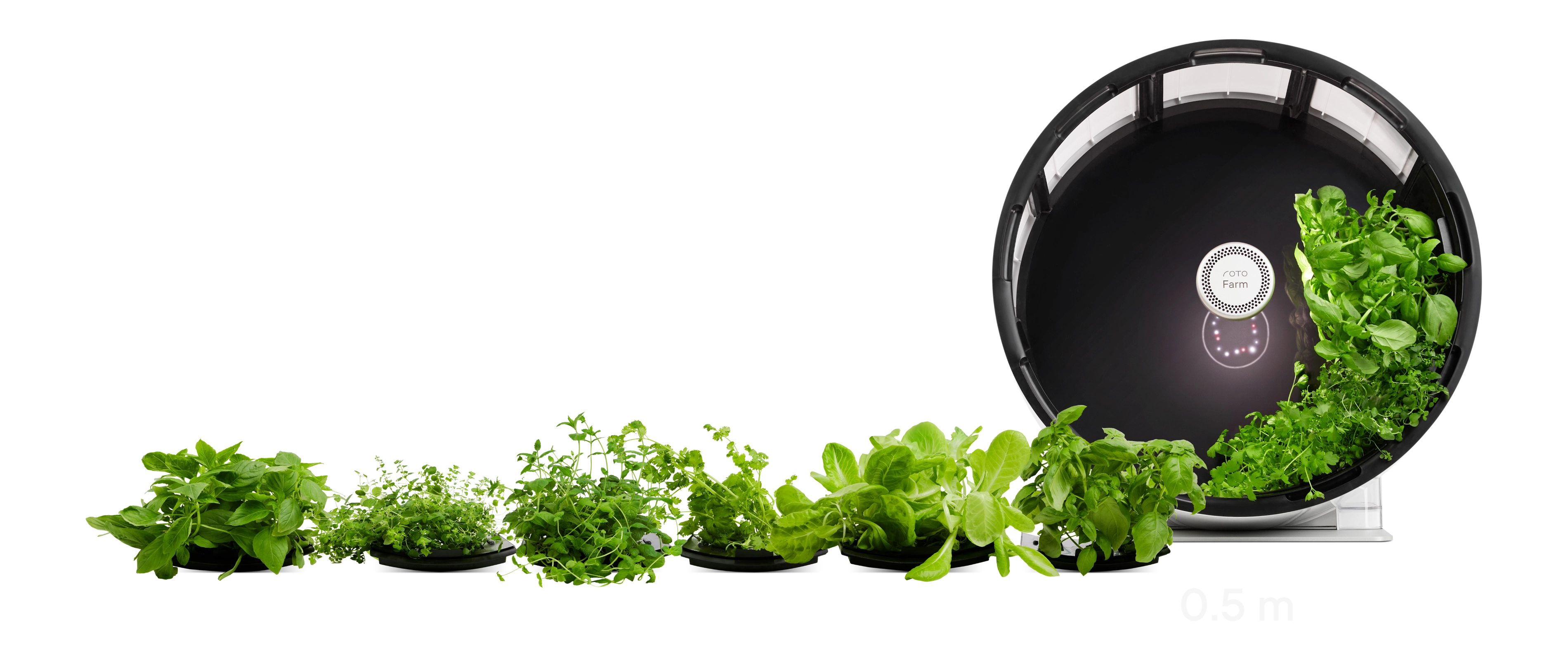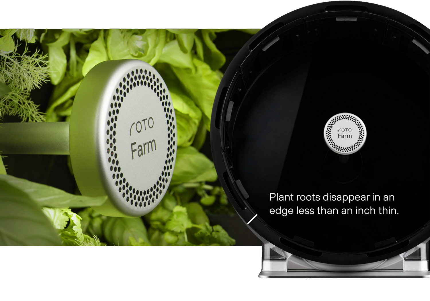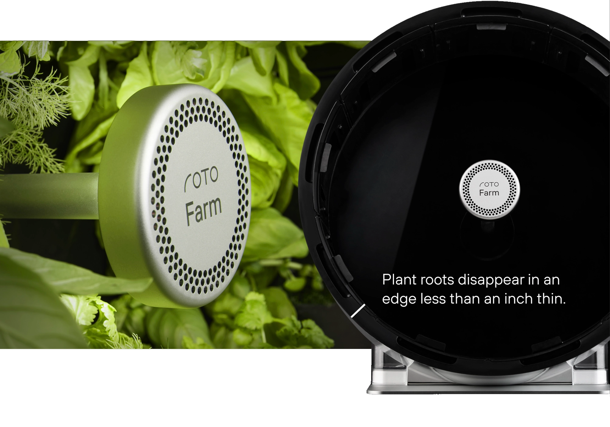 A groundbreaking circular design is 3x more space-efficient than typical horizontal growing devices and saves counter space. Roto Farm is truly worthy of joining your other kitchen appliances.