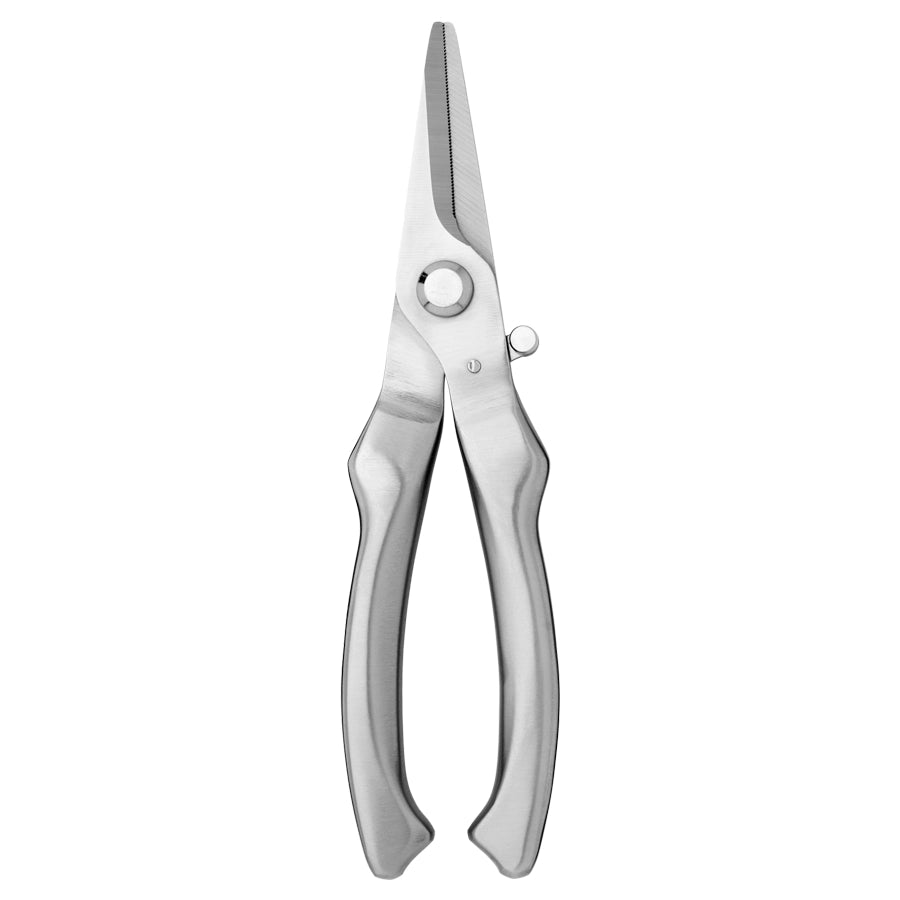 100% stainless steel with invisible spring mechanism. Nano-serrated blades ideal for herbs and vegetables of all kinds.